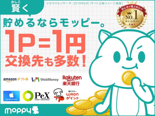 私がメインで利用しているポイ活サイトです✨☑️1ポイント=1円と分かりやすい。☑️ポイントの交換先も豊富。☑️アンケートやゲームなど毎日コツコツ、無料でポイントを貯めることができるので、隙間時間を使ってお小遣い稼ぎしちゃいましょう😊【モッピー】