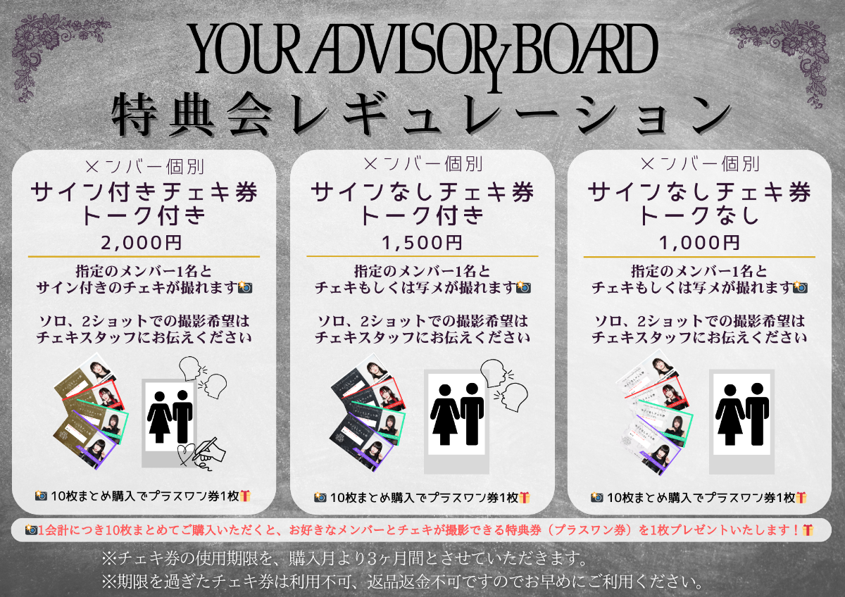 チェキのレギュレーションを10/1~変更いたします(画像参照)