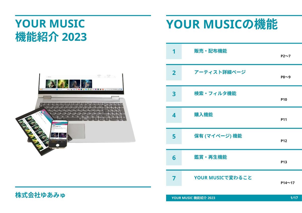 サービス機能をまとめた紹介資料です。【YOUR MUSICでできること】【使い方】【YOUR MUSICで変わること3点】などを解説しています。ゆあみゅ公式HP