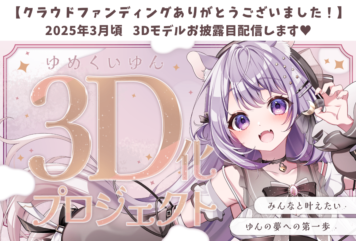 - 2024~2024.01 ┆【掲載】MoguLive 2024年期待したいVTuberベスト16位2024.01 ┆【食レポ】金色の牛タン様2024.02 ┆【イベント】#推し対 参加2024.02 ┆【音声作品リリース】AppleMusicキャンペーン実施2024.02 ┆【コラボカフェ】オリジナルドリンク チャレパ様『ゆめくいゆんのふわふわとろける紫いもみるく』2024.03 ┆【クラファン】ゆめくいゆん3D化プロジェクト実施2024.06 ┆【販売】アパレルコラボ L.T.A.様2024.07 ┆【販売】ラーメンコラボ 海練様2024.12 ┆【イベント】marurucafe(コラボカフェ/1on1) 『ゆめくいゆんにとろけたいですココア』『だーくまたーちゃんの焦げてないよトースト』