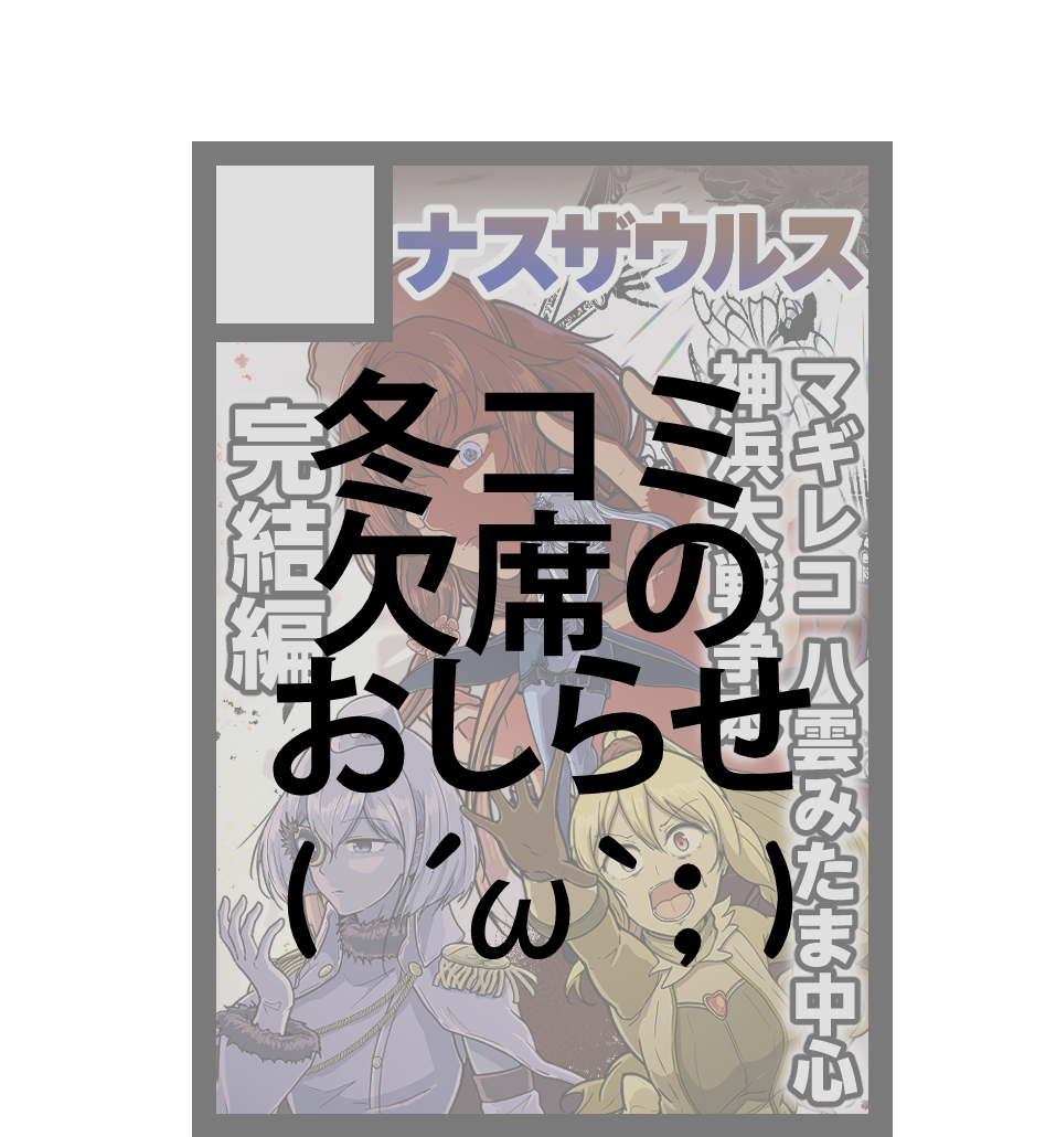 実際のところコミケ当落発表の時すでに予定がヤバいと分かっていたのですが、どうにかならんか…と色々足掻いた結果やっぱどうにもならんわ…という事で今日の報告となりました。