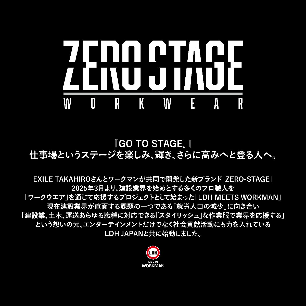 WORKMANの ZERO-STAGEを着て、お聴きいただきたい楽曲をセレクトしました。「STAGE YOURSELF.」をコンセプトに今回制作した新しいアイテムと一緒に、EXILE楽曲を全身で感じていただき、毎日をよりパワフルに過ごして下さい‼心から応援してます‼